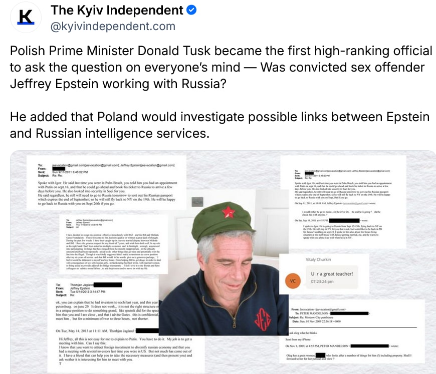 The Epstein scandal has gone global, and has begun taking down business and political elites across the world. Trump’s efforts to contain the scandal, suppress it, have failed. Yesterday the Polish government announced an investigation into Epstein’s ties to Russian intelligence:
