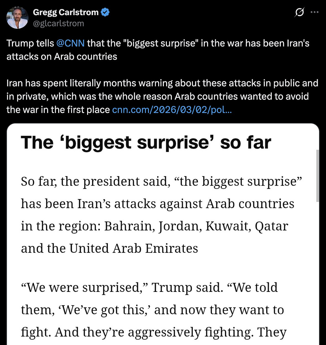 A Disastrous Jobs Report, Russia Is Helping Iran Attack The US, The War Is Spinning Out Of Control - America Needs A Course Correction, NowOur addled and desperate leader is putting America and the world into grave danger - Democrats must fight to force a course correction......Morning all. We are going to discuss three important news stories this morning - the disastrous jobs report, Russia helping Iran kill Americans, dire warnings coming from the Middle East. Let’s start with the warning from Qatar this morning. Trump’s reckless, impulsive new war has become a clear and present danger to the global economy: Next, a Washington Post bombshell - Russia is providing Iran intelligence to target U.S. forces:
