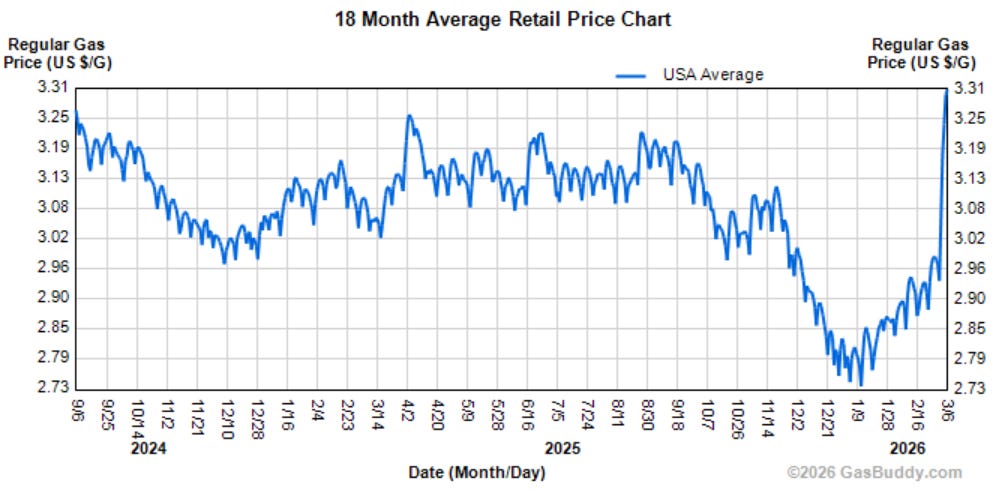 Let’s review some basic data this morning. Only 219,000 jobs have been created in America in Trump’s first thirteen months. This is less than the monthly average under Clinton and Biden: Gas prices are spiking in the US: The last two inflation reports showed inflation has been re-ignited and is rising prior to the price shock that is coming from the war: This war, launched without consulting Congress, has become a clear and present danger to our economy and the economy of the world. Given what we are learning today Democrats must fight to force an immediate course correction on several fronts: Make Clear We Support Ukraine and Europe, Not Russia - Russia is helping Iran attack America, Ukraine is coming to defend us. There can be no more corrupt and dangerous Trumpian appeasement of Putin, particularly as the tide may be turning against Russia in Ukraine. Democrats should revive the bi-partisan Russian sanctions bill in the Senate, and introduce an aid package for Ukraine to re-direct our focus to the war that is far more geopolitically important to America than our new Gulf War. Work To End This New Gulf War, And Trump’s Global Imperial Ambitions - Put America back on the side of rule of law and democracy, here and everywhere, and end this illegal, and unnecessary, war that is now threatening the global and US economies. Roll Back The New, Illegal Tariffs - To help ease rising inflation Trump must be forced to roll back his new, illegal and destructive tariffs. The Dem AGs have already filed a new law suit. We should be forcing votes once again in Congress and fight this reckless policy. Rescind The Trump Tax Cuts, Claw Back The Extra ICE Funding - With the $2.4t in tariff revenue Trump was planning on getting from his tariffs (over 10 years) eventually disappearing, and our fiscal condition in the US worsening, we cannot afford the Trump tax cuts and extra ICE funding. Both policies, at the core of the big ugly bill, should be reversed. Make The US A Clean Energy Superpower, Fight For True Energy Independence, And Lower Energy Prices For The American People - This war is a reminder that committing America to the transition from fossil fuels to cheaper, safer, cleaner renewable energy is not just an economic and climate necessity it is a geopolitical one too. Paul Krugman has a terrific piece on this today well worth your time. Keep Fighting To Rein In ICE - cannot let up on this for one moment. As I discussed in my talk this week we have to come to understand Trump not just an impulsive madman but also as a titanic fuck up. He’s doing repeated material harm to the country and the world. He’s tanked our economy; caused inflation to re-ignite, is putting America into a dangerous fiscal position; taken a wrecking ball to our health care system; made Measles and other diseases great again; trampled our rights and liberties; is illegally invading other countries and destabilizing the world; abandoned our allies and appeased dictators; and is illegally covering up the most consequential scandal in American history….the list goes on and on. Democrats should be working towards creating a comprehensive agenda now to address the harms of Trump’s second term. It can become the basis of our 2026 campaign pitch, and a blueprint for what we do when we gain back power in 2027. Consider what I’ve offered here today as an early draft, as is our working Hopium Agenda. Now, my friends….. Let’s Get To Work!!!!!!!!!!!!!!!!!!!!!!!!!!!!!!!!!!!!!!!!!!!Winning The Midterms, Competing In Red States and Red Places, Expanding The MapHopium’s Winning The House Campaign (2026) - $288,600 raised, $400,000 goal (new stretch goal) - Donate to all twelve of our endorsed House challengers with one click | Learn More | Enjoy our new conversations with Christina Bohannan (IA-01), Mayor Paige Cognetti (PA-08), Jo Mendoza (AZ-06), and Janelle Stelson (PA-10) and learn more about the eight candidates we just added to our campaign here. We will be meeting the rest of our newly expanded slate of intrepid House candidates in the coming weeks. It’s a great crew! This fundraising total includes funds already raised with our friends at FridayAction for a joint event we’re doing later this month. James Talarico For Texas - $23,800 raised, $100,000 March 31st goal - Donate | Volunteer and Learn More | Watch my recent interview with Rep. Talarico Mary Peltola For Alaska Senate - $42,400 raised, $250,000 goal - Donate | Volunteer and Learn More. Amazing start everyone! Roy Cooper for NC Senate (2026) - $82,900 raised, $250,000 goal - Donate | Learn More | Volunteer | Enjoy my conversation with Gov. Cooper Winning Ohio - $67,600 raised, $250,000 goal - Our new campaign splits contributions evenly among Sherrod Brown, the Acton/Pepper ticket, and the Ohio Democratic Party. Donate today and help us turn this critical 2026 battleground blue! | Watch my conversation with David Pepper, who does a great overview of the opportunities we have in Ohio this year. Note a generous donor has sent $21,000 worth of Hopium-infused contributions directly to the candidates which are not included in our on-line goal tracker. Hopium’s Audacious Expansion Fund - $391,700 raised, $500,000 goal (new stretch goal) - Join our new campaign to expand our map by investing in the Democratic Parties of Alaska, Florida, Iowa, Maine, and Texas. Many thanks to two generous Hopium community members who have audaciously donated $10,000 to each of our five state parties. Jon Ossoff GA Senate (2026) - $136,500 raised, $250,000 goal - Donate | Learn More | Volunteer | Enjoy my inspiring conversation with Senator Ossoff Advocate For The Hopium Agenda/Pass Resolutions Of Condemnation In Your Community/Study The Spangerberger And Padilla SpeechesTwo more ways you can go to work in the coming days - call your leaders and advocate for elements of our working, ever evolving Hopium Agenda; and bring resolutions that condemn our Mad King and lets facts 