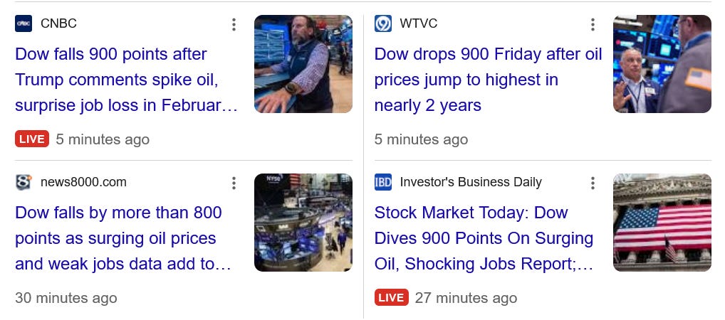 Let’s remember that our addled leader expressed “surprise” that Iran (and Russia it now appears) would retaliate: Finally, the disastrous jobs report. We lost 92,000 jobs in February. This data confirms other recent data that Trump’s economic policies have failed, and that things are heading in the wrong direction. GDP grow fell sharply in the fourth quarter. Inflation is rising again. We are now losing jobs. Our fiscal condition - already weakened by the eventual loss of trillions of revenue due to the striking down of the tariffs, higher than desired interest rates, and reckless tax cuts - is going to deteriorate even further as the economy slows. And what has Trump done to address these worsening conditions his failed policies have brought? He’s done two things to make things worse: