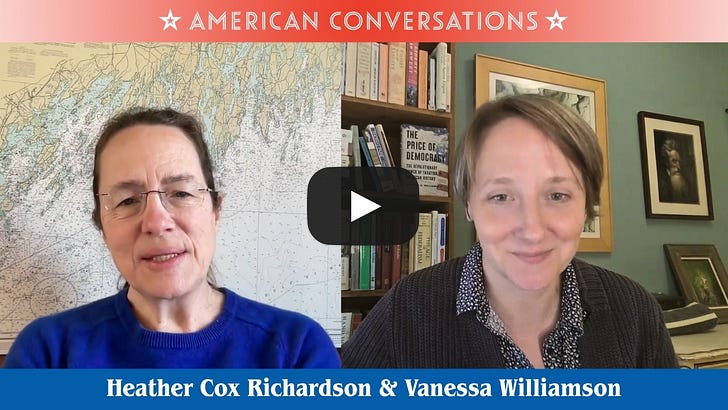 Yesterday, I had the chance to speak with Dr. Vanessa Williamson of the Brookings Institution about the relationship between taxes and democracy. I sought her out because I thought the ideas in her 2025 book, The Price of Democracy: The Revolutionary Power of Taxation in American History are a great companion to my conversation with Dr. Timothy Snyder about the difference between freedom FROM and freedom TO. Our conversation was all that I had hoped and more. I’m calling attention to it because her explanation of taxation, democracy, power, and accountability strikes me as something that should be on far more radar screens than it is. I hope you enjoy it. A day later, I’m still blown away. You’re currently a free subscriber to Letters from an American. If you need help receiving Letters, changing your email address, or unsubscribing, please visit our Support FAQ. You can also submit a help request directly. For the full experience, upgrade your subscription. |