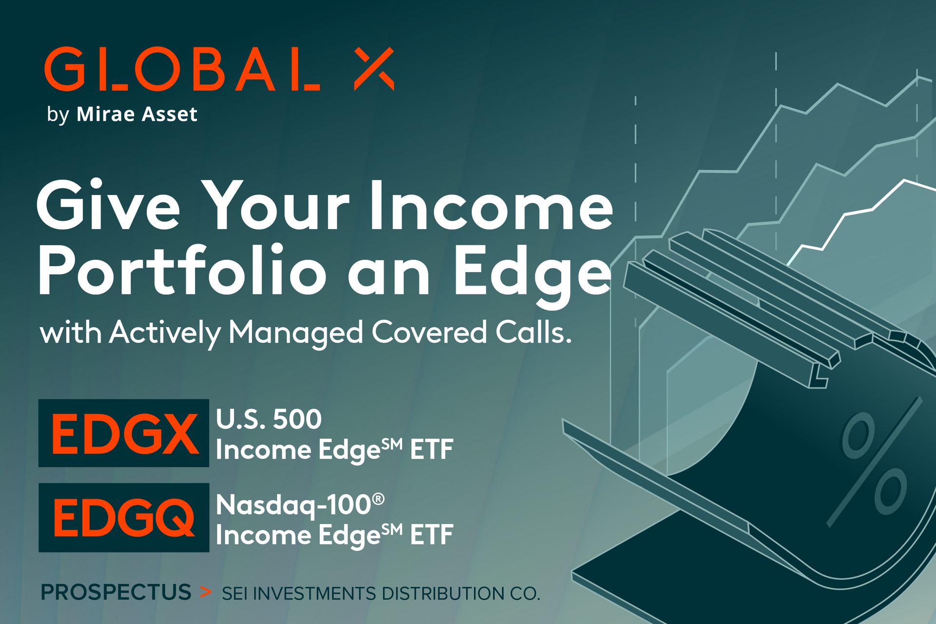 Global X's Income Edge Suite℠ includes EDGX, offering large-cap U.S. equity exposure, and EDGQ, focused on the Nasdaq-100, giving investors two ETF options for pursuing income alongside equity exposure — discover more. |