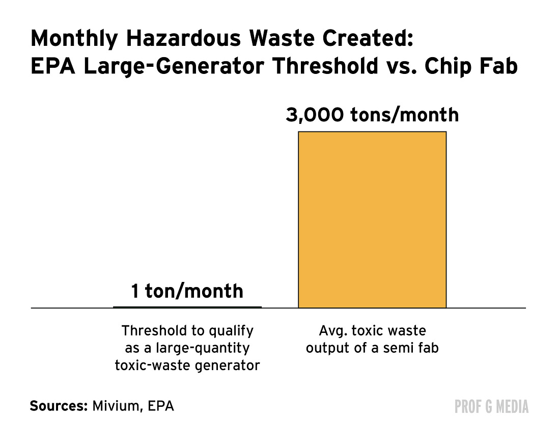 Just a year ago, global capital was flooding into emerging markets. Now, the war has made many of those investments look too risky. The MSCI Emerging Markets Index has lost over $1 trillion in market cap, while the dollar climbed to a three-month high last week — an early sign that investors are moving back toward the relative safety and liquidity of U.S. markets. In the U.S., we don’t realize a lot of our success is unearned. We have two oceans protecting us, friendly neighbors on both borders, and we’re one of the most resource-rich nations on Earth. We produce more energy and food than we consume. The U.S. just doesn’t go out of business. Before we make a single decision, the deck is already stacked in our favor. But those unearned advantages go only so far. We’ve assumed that controlling a third of global GDP means controlling the world. But our dominance wasn’t about size, it was about cooperation. We built the operating system on which 60% to 70% of global GDP runs, and that system works because nations chose to participate in it. That choice was never unconditional. Our markets will be fine because capital flows are amoral. Money goes wherever it can get the greatest return, and as long as the U.S. remains the center of gravity for entrepreneurship, whether that’s AI, biotech, or space, the capital will keep coming. The real long-term threat is talent. Young people are more moral than capital. The best and the brightest will start choosing London, Singapore, or Tokyo over the U.S. not because the opportunities aren’t here, but because their values no longer align with ours. That could have huge long-term impacts on our country. For all the talk of American self-sufficiency, this crisis is raising an important question: How independent are we really? Yes, the U.S. is far more energy secure than many countries, but that doesn’t mean that America can unleash chaos abroad and assume it’s immune to the consequences. For instance, we’ve become very dependent on global relationships. The Gulf states have become major backers of the American startup and tech ecosystem, pouring tens of billions into U.S. companies and promising even more. Our alliances with Europe and NATO have also been crucial to American economic and geopolitical strength. If Gulf countries are absorbing serious economic damage, are they really going to keep investing in the U.S. at the same pace? If Europe ends up paying a much steeper inflation price for a conflict that the U.S. started, does that strain our relationships? The real risk is not just higher oil prices. It’s that America may be overestimating how immune it is from the blowback. sponsored content Keep Your SSN Off The Dark Web Every day, data brokers profit from your sensitive info—phone number, DOB, SSN—selling it to the highest bidder. What happens then? Best case: companies target you with ads. Worst case: scammers and identity thieves breach those brokers, leaving your data vulnerable or on the dark web. It’s time you check out Incogni. It scrubs your personal data from the web, confronting the world’s data brokers on your behalf. And unlike other services, Incogni helps remove your sensitive information from all broker types, including those tricky People Search Sites Help protect yourself from identity theft, scam calls, and health insurers raising your rates. Plus, just for PROF G MARKETS readers: Get 55% off Incogni using code PROFG sponsored content The Dirty Secret Behind the Chip BoomWithout semiconductors, we would have to entertain ourselves without TVs, communicate without smartphones, research without computers, defend ourselves without high-tech weapons, and boost company earnings without AI. We’re a nation built on technology and sustained by semiconductor chips. Semiconductors, which are colloquially referred to as chips, are so important that Congress named an infrastructure bill after them (the CHIPS and Science Act). Between that, two other federal laws, and at least a dozen state initiatives, we’ve allocated over $90 billion to subsidizing the American chip industry. That’s about nine years’ worth of federal farm subsidies. Thanks to these initiatives, the U.S. is expected to triple its domestic semiconductor manufacturing capacity by 2032. However, our need for semiconductors has made us willfully ignorant of their externalities. Semiconductor factories, known as fabs, are prolific producers of toxic waste — but nobody wants to talk about it. On the bright side, this collective ignorance has created a compelling investment opportunity. The Dirty Details Semiconductor factories churn out toxic slurries, acid gases, and polyfluoroalkyl substances (PFAS). This hazardous waste spills out into our drinking water. Samsung’s semiconductor facility in Austin, Texas, spilled hundreds of thousands of gallons of toxic waste, including sulfuric and hydrochloric acid, into the Colorado River in 2022. But it’s the PFAS, compounds that are essential to producing advanced chips, that are the hardest to get rid of. PFAS are also called “forever chemicals” because they can take decades to decay in the body. They’re associated with a range of health issues, including hypertension, diabetes, infertility, cancer, obesity, autism, cardiovascular diseases, and kidney and liver disorders. Their impact on fertility is particularly intense. Mount Sinai researchers found that exposure to PFAS can reduce fertility in women by as much as 40%, and a 2019 meta-analysis of six studies found that female fab workers had a 29% to 43% higher risk of spontaneous abortion than nonfab workers. But it’s not just factory workers who are exposed. Millions of Americans are exposed to forever chemicals every day. Conventional wastewater treatment doesn’t remove PFAS, so contaminated water passes through most plants into rivers, lakes, and groundwater that feed drinking‑water systems. Most at-home filtration solutions d