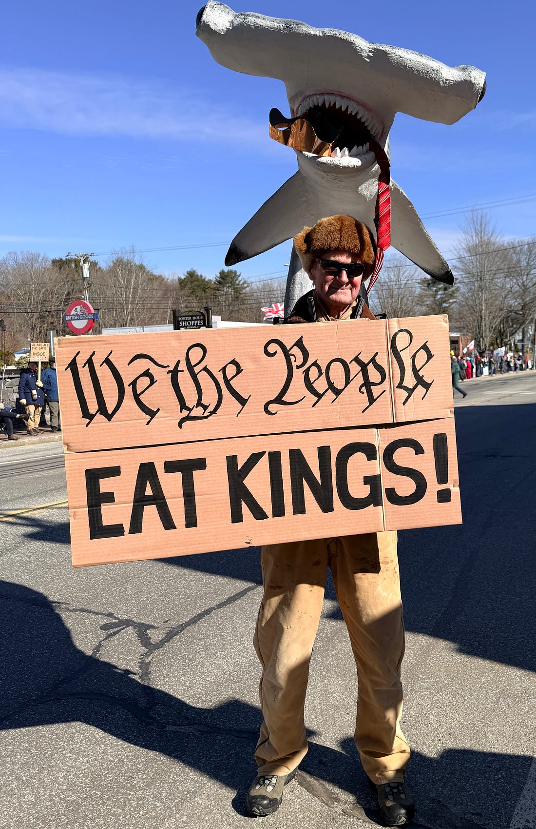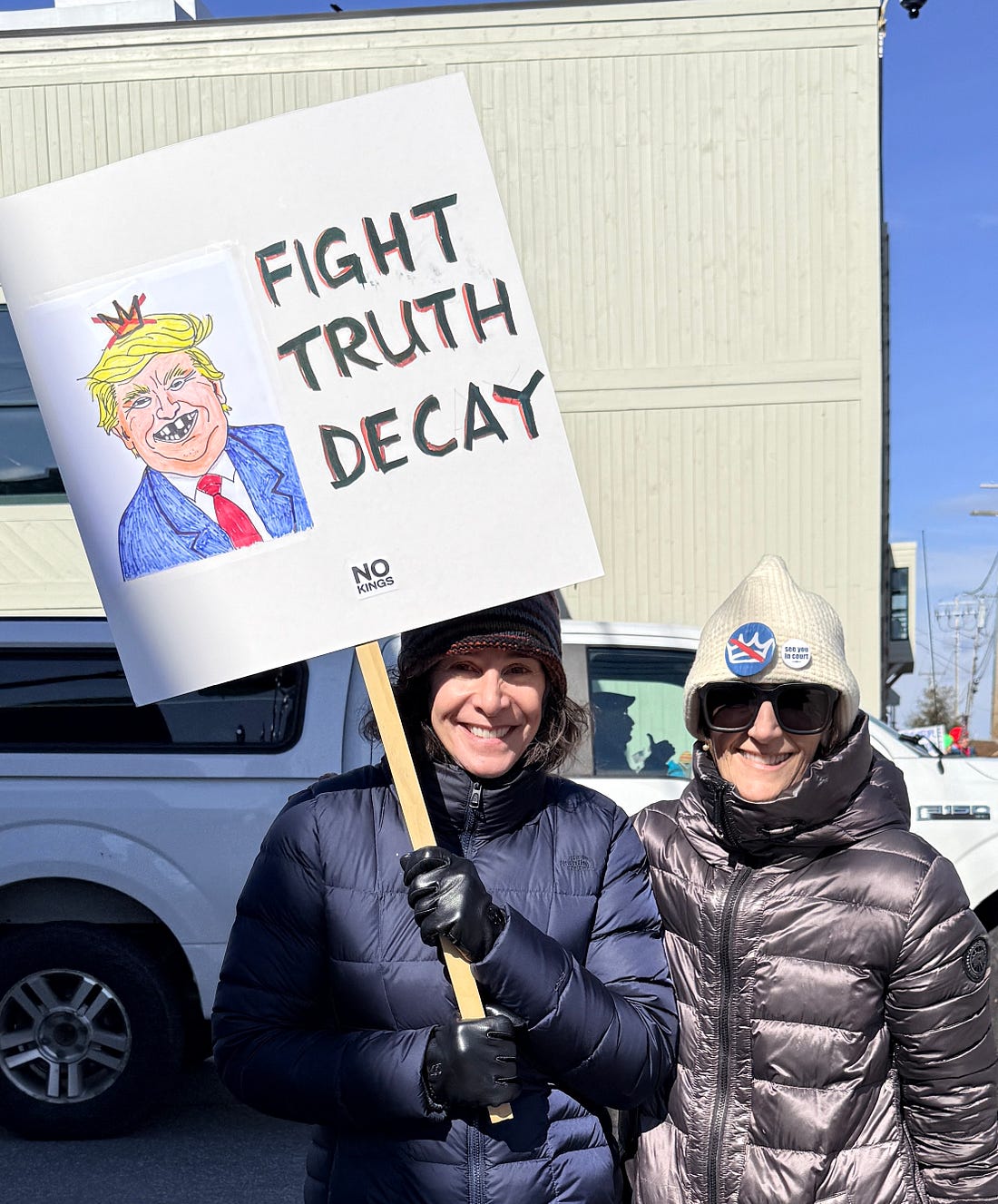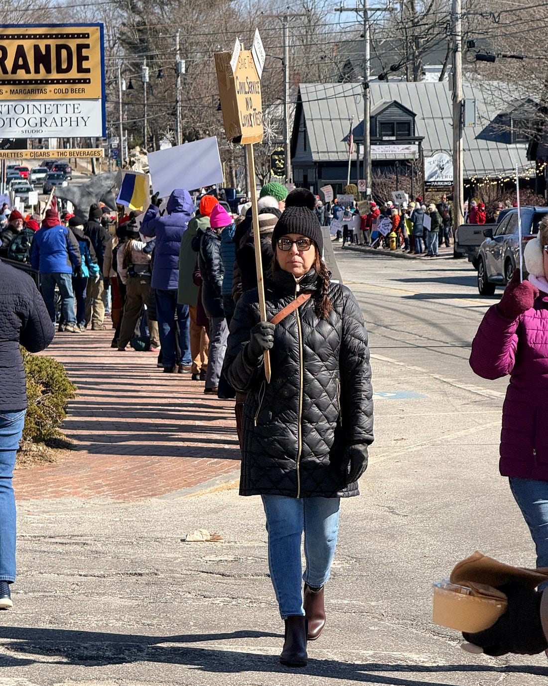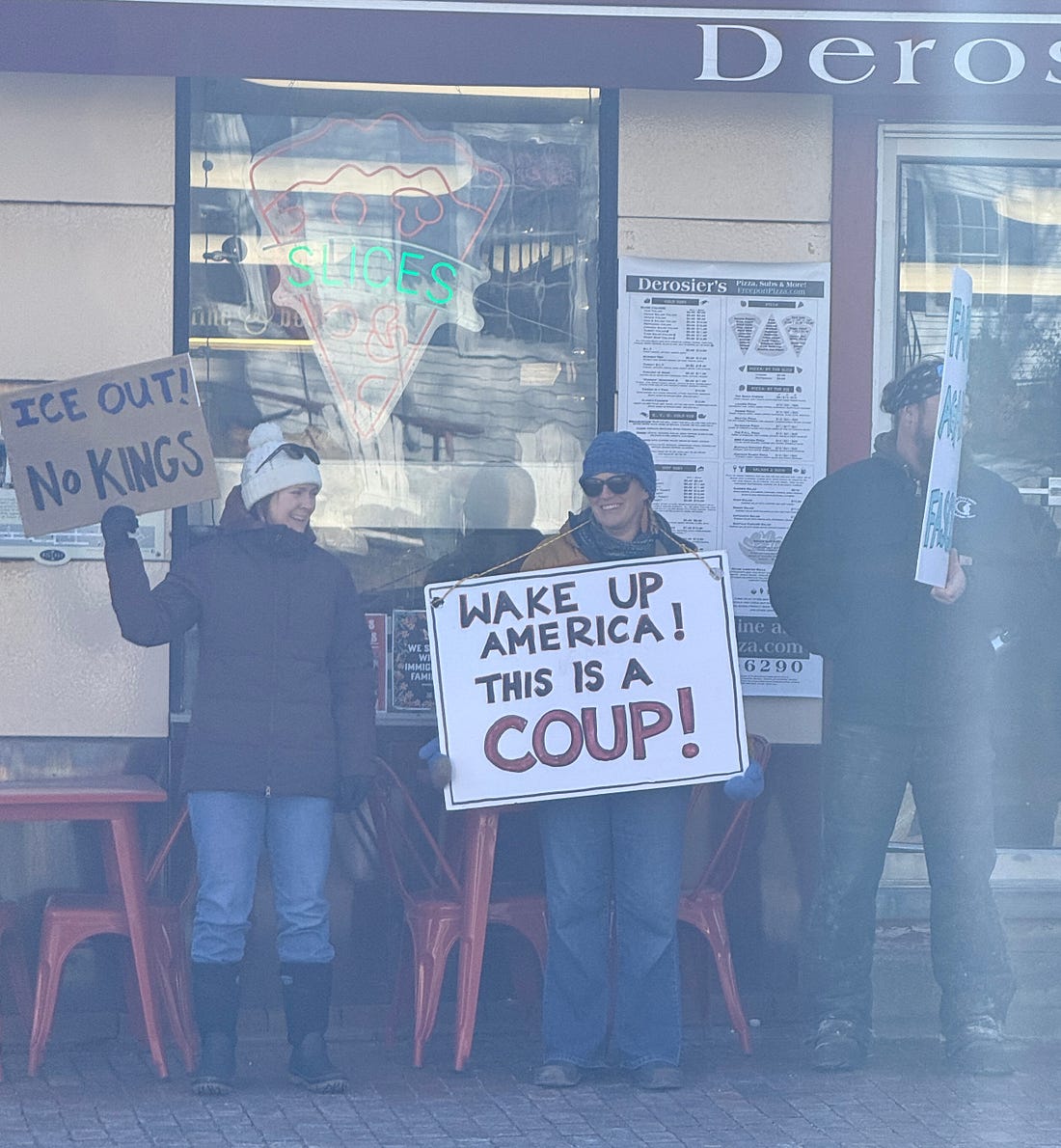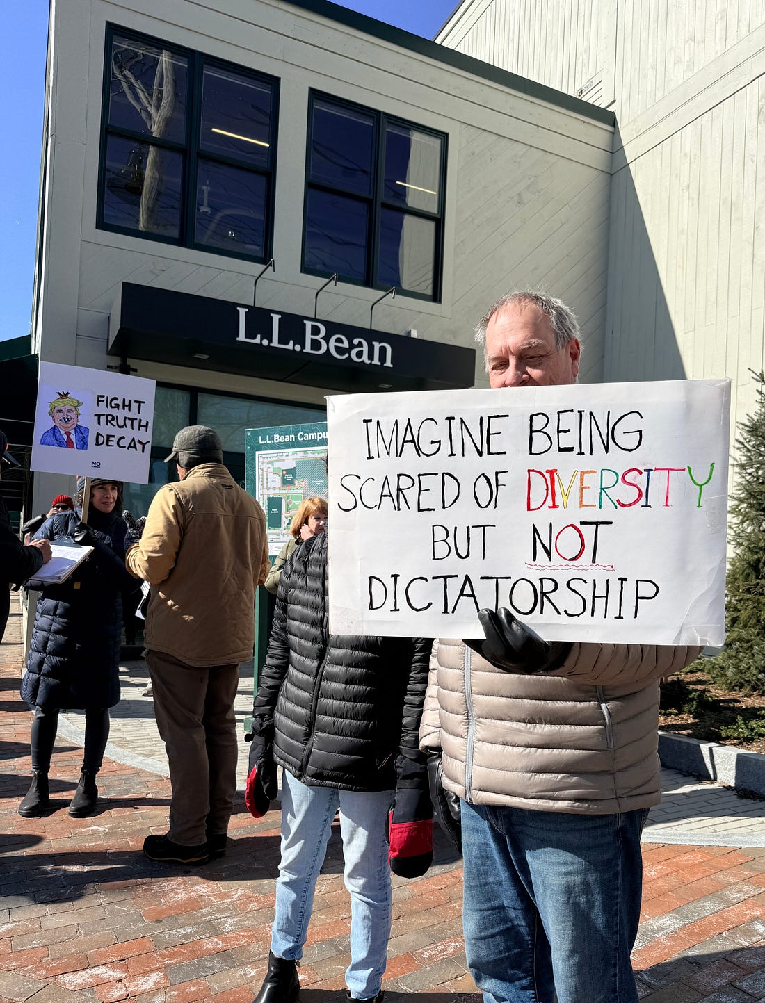 The signs were epic this morning in Freeport, Maine, where I’m hanging out with my kid for the weekend. (Thanks for failing to fund TSA, GOP.) It was 19 degrees at 8 a.m. when the rally, which lined Main St. with hundreds of people, lots of young people and kids among them, kicked off. There was lots of friendly horn honking, smiles over clever signs, and coffee from Dunkin’. And it made me feel good to be an American. People understood the assignment. Some of the signs offered painful clarity. I went with a friend who made this brilliant sign. And we saw this guy, who reminded us that saving democracy can actually be fun. Because if we lose our ability to take joy in being with friends and neighbors, our ability to laugh, then what’s the point? I know many of you are out now or will have a chance to get out later today. Be proud of yourselves and what we are doing. While we celebrate today, we also need to grow the awareness that it can’t just be one day, that we’re at a tipping point that requires all of us to get involved and do the hard work of democracy that is ahead of us. I remain optimistic that we can do it—even Alabama is going full force today. The question is, what are we going to do tomorrow, and the day after that, and so on until people who value democracy prevail in the midterm elections and we can start to restore our institutions? It’s time to make your plans. We’re in this together, Joyce You're currently a free subscriber to Civil Discourse with Joyce Vance . For the full experience, upgrade your subscription. |