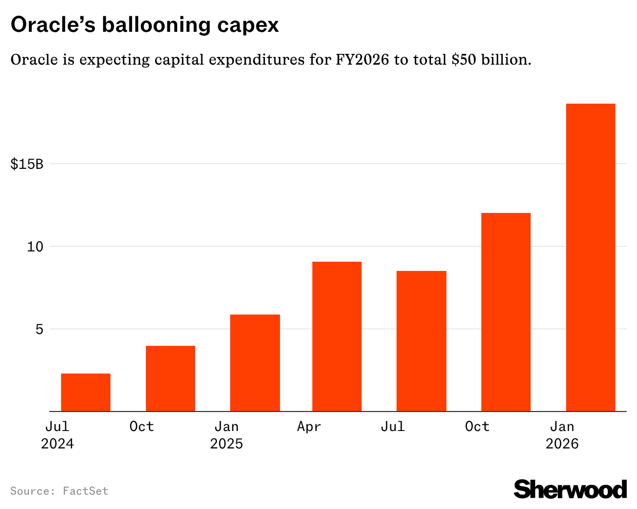 - Oracle's closely watched capex for the quarter was $18.64 billion (estimate: $14 billion).