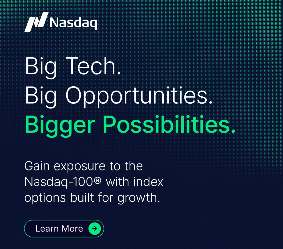 Advertiser's disclosures: Nasdaq® is a registered trademark of Nasdaq, Inc. The information contained above is provided for informational and educational purposes only, and nothing contained herein should be construed as investment advice, either on behalf of a particular security or an overall investment strategy. Neither Nasdaq, Inc. nor any of its affiliates makes any recommendation to buy or sell any security or any representation about the financial condition of any company. Statements regarding Nasdaq-listed companies or Nasdaq proprietary indexes are not guarantees of future performance. Actual results may differ materially from those expressed or implied. Past performance is not indicative of future results. Investors should undertake their own due diligence and carefully evaluate companies before investing. ADVICE FROM A SECURITIES PROFESSIONAL IS STRONGLY ADVISED. For the sake of simplicity, the examples included do not take into consideration commissions and other transaction fees, tax considerations, or margin requirements, which are factors that may significantly affect the economic consequences of a given strategy. An investor should review transaction costs, margin requirements and tax considerations with a broker and tax advisor before entering into any options strategy. Options involve risk and are not suitable for everyone. Prior to buying or selling an option, a person must receive a copy of Characteristics and Risks of Standardized Options. Copies may be obtained from your broker, one of the exchanges or The Options Clearing Corporation, One North Wacker Drive, Suite 500, Chicago, IL 60606 or call 1-888-OPTIONS or visit www.888options.com. Any strategies discussed, including examples using actual securities and price data, are strictly for illustrative and education purposes and are not to be construed as an endorsement, recommendation or solicitation to buy or sell securities. © 2026. Nasdaq, Inc. All Rights Reserved. |