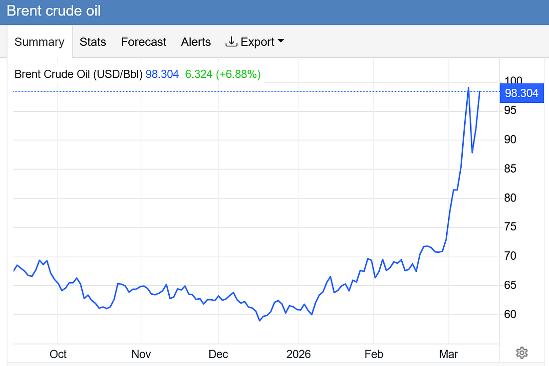 Morning all. Our Hopium paid subscribers gathered last night for our weekly get together. It was a well-attended and lively affair. A video recording of our discussion is above and a transcript is here. Some notes from the presentation last night and this morning’s news: FUBAR - Tankers burning in the Gulf. Oil prices spiking again. The Trump regime looks like pathetic amateurs, way over their head, Epstein desperate, and easy “take the win and go home” options getting harder to see. Oil is back up to $100 a barrel despite a massive intervention by global governments: Gas prices keep rising in the US: Trump is doing enormous damage to an American economy already weakened by his destructive policies (more here and here); and enormous damage to his party already weakened by his failed 2nd term. Eight months out from the election Republicans are now coming to grips with the reality that as bad as things are for them they are going to get worse. Inflation is going to get worse. Interest rates are not going to come down. The economy will slow further. The deficit will grow even bigger. The effects of their enormous cuts to our health care system are going to start becoming far more evident as the year goes on. The Epstein scandal has metastasized, and may threaten not just Trump but many other senior Republican leaders. Miller’s overreach has turned their defining issue - immigration - into a scaring liability. It’s going to get worse for them for Democrats have a significant advantage in the elections right now before we’ve been begun to communicate. Consider that almost every Republican incumbent in Congress running in a competitive race has voted for: