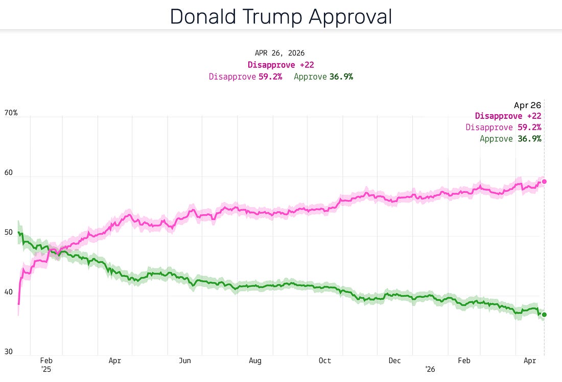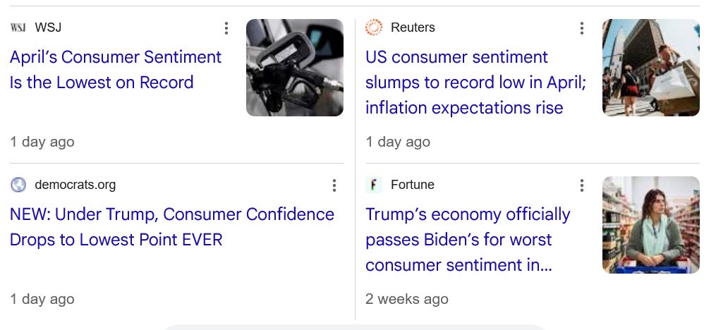Here are a few other things I’m tracking today on this cold and dreary morning in Washington, DC…. Yesterday Trump was once again forced to acknowledge that his war is a monumental failure, and that he no plan to get the world out of the extraordinary crisis he has created: On Friday the University of Michigan’s gauge of consumer sentiment recorded it’s lowest reading in its 65 year history: FiftyPlusOne’s Trump approval tracker clocked in at 36.9%-59.2 (-22.3) after the worst week of polling Trump has seen in his second term: Some other things of note: