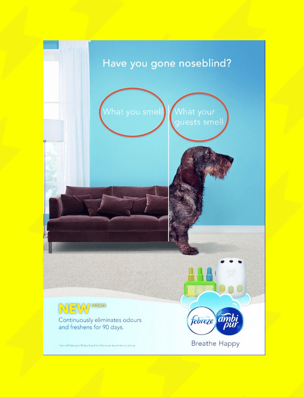 That moment when your brain stops registering a nasty smell you’ve been living with too long? Yeah, Febreze calls it “noseblind.”
