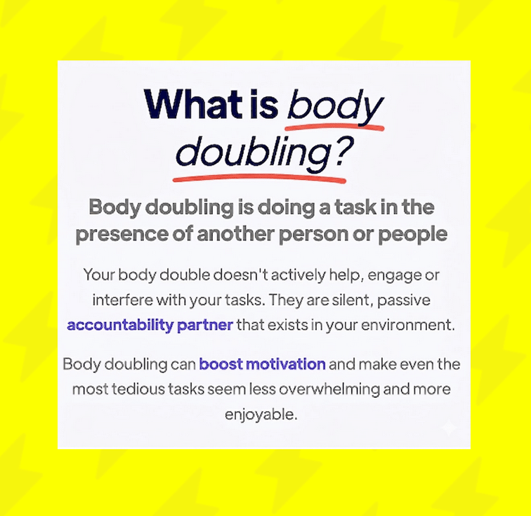 That's not a coincidence. It has a name: body doubling. It’s the simple act of working in the silent presence of another person to stay focused and motivated.